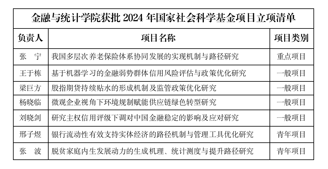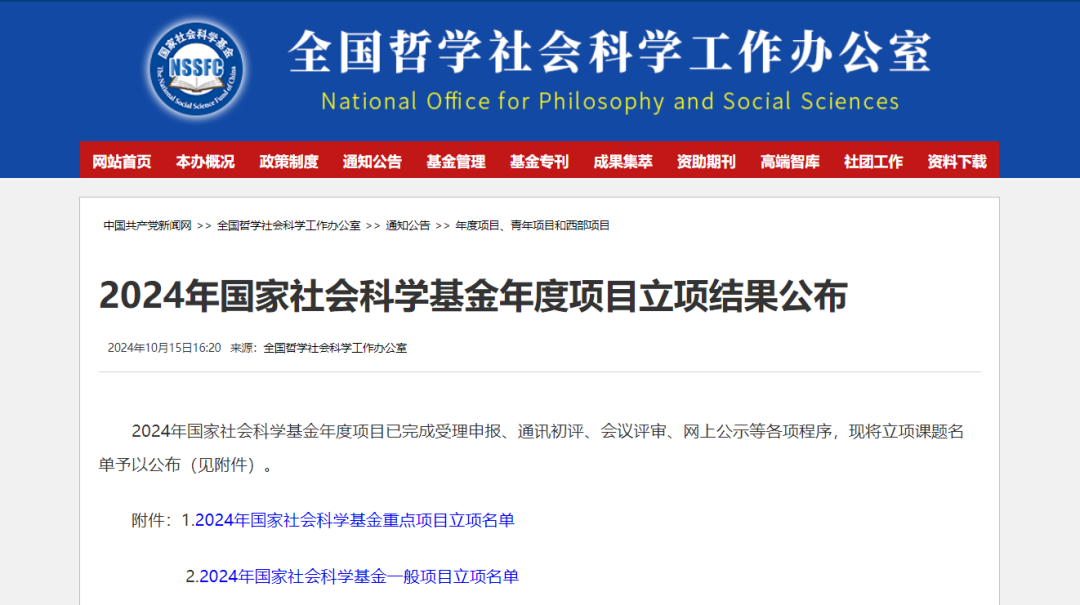 近日,全国哲学社会科学工作办公室公布了2024年国家社科基金年度项目立项结果,A动漫 国家社会科学基金项目共申报15项,获批项目资助7项(其中重点项目1项,一般项目4项,青年项目2项),立项率46.7%。谨在此向A动漫 7名老师表示祝贺!