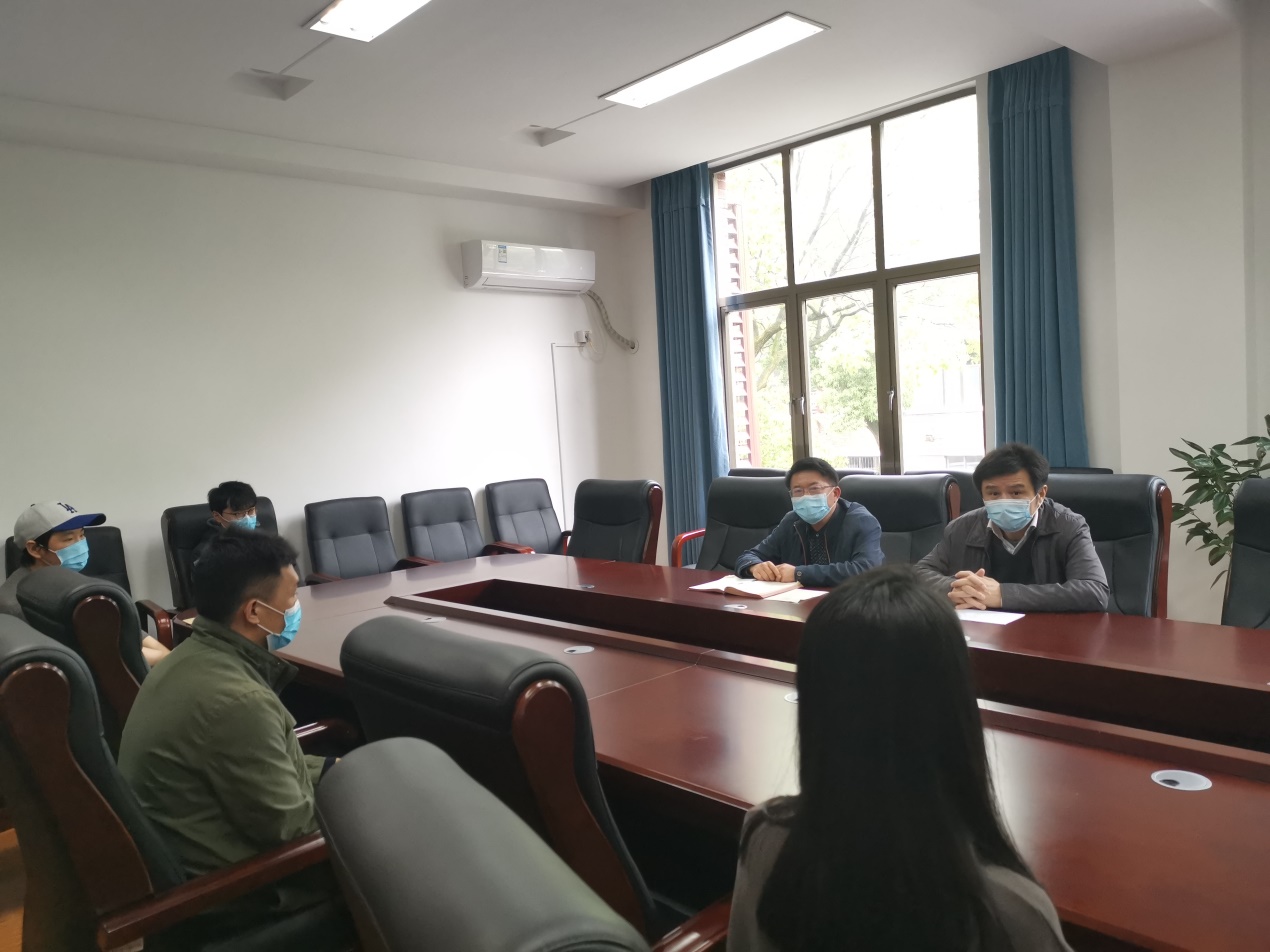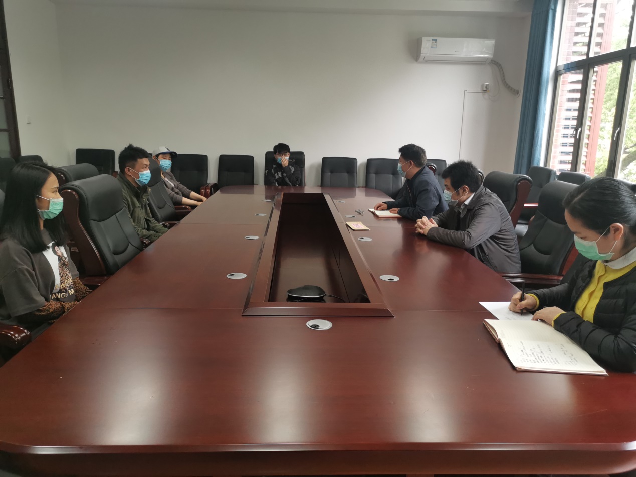 4月23日,A动漫 召开留校本科学生座谈会,党委书记聂国军、院长潘敏、辅导员谢君、庄韫帆和四名留校学生参加会议。