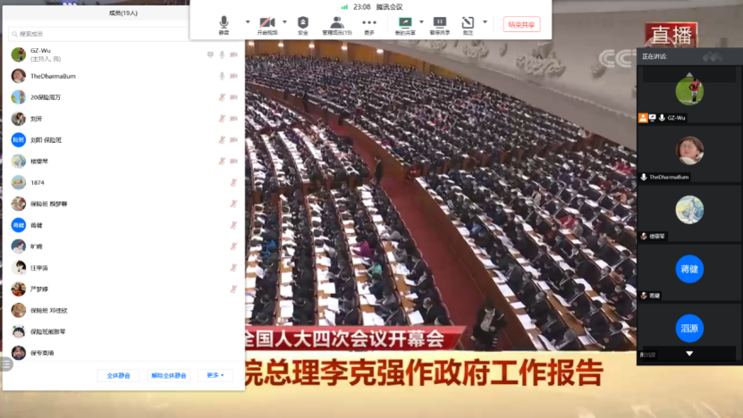 同学们在兼顾课程与科研之余,通过网络渠道密切关注着“两会”动态,共同学习、积极讨论“两会”精神,把握时代脉搏。