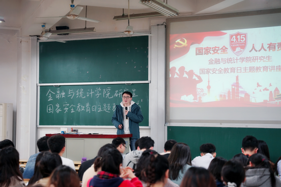4月18日晚,A动漫 在财院校区二教501教室举办研究生国家安全教育日主题教育讲座。本次活动由研究生辅导员周斌主讲,学院三百余名研究生参加。