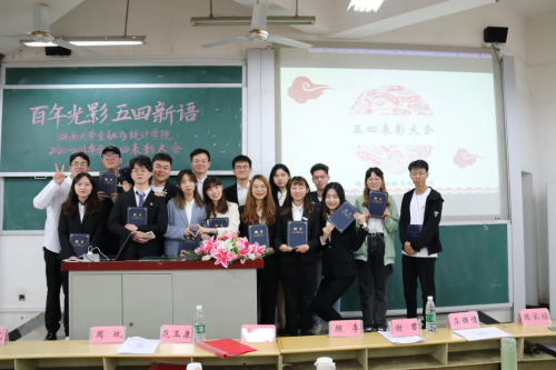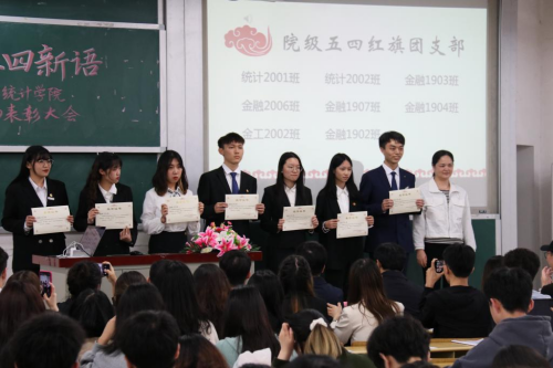 会上,荣获“五四红旗团支部”称号的统计2001班团支部和获得“优秀志愿者服务团队”项目代表金大团志愿者团负责同学进行风采展示。荣获“优秀团干”的代表姚飞宇同学、荣获“学风引领奖”的代表许筱颖同学发言。