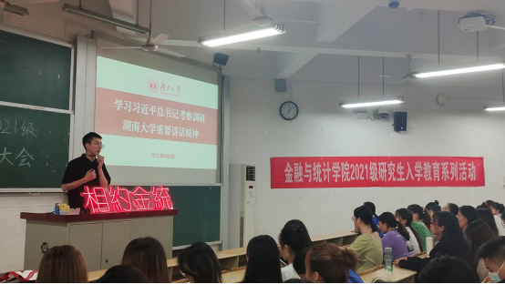 随后,金统院研究生会李凌云主席向全体研究生介绍了“党-团-研-班”的干部体系,并组织党总支、团总支和研会各部门进行宣讲。