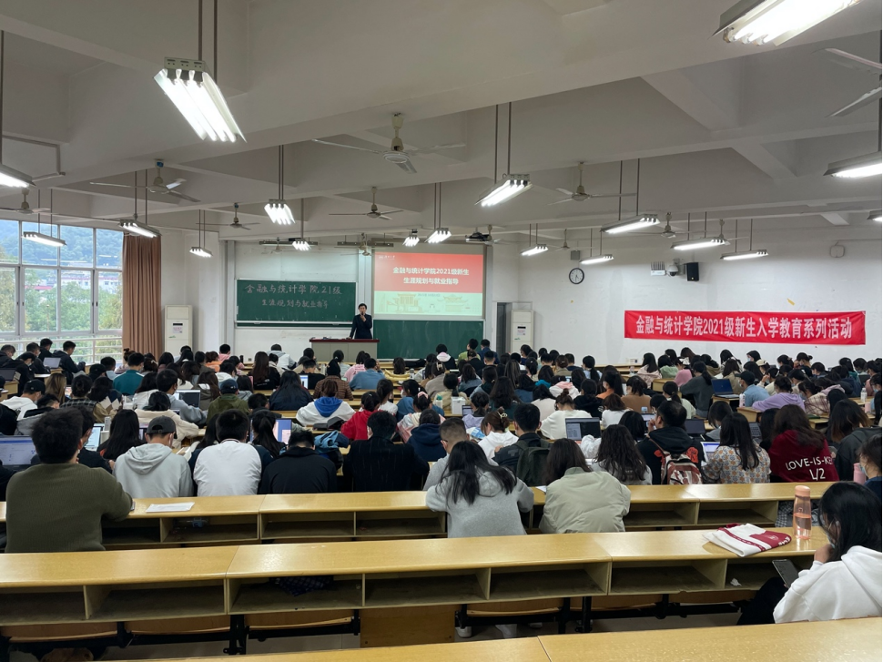 10月22日下午,A动漫 2021级新生职业生涯规划入学教育讲座在财院校区二教502举行,A动漫 招生与就业指导处陈义红老师做职业生涯规划专题报告,学院2021级本科生、研究生参加讲座。