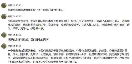 谢君做出了总结,并鼓励干部群体要发挥作用,努力建设一个充满爱、温暖的班集体。