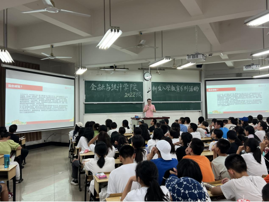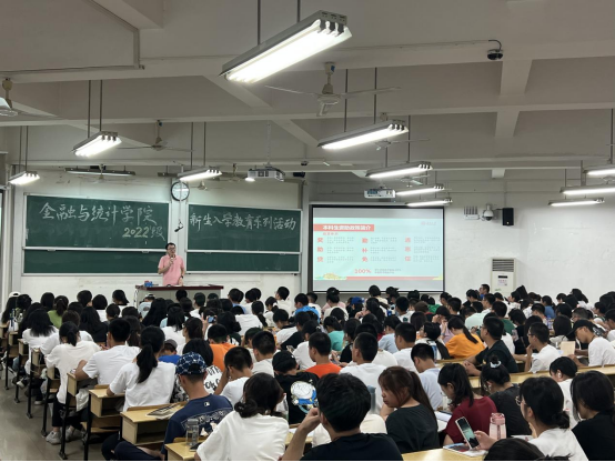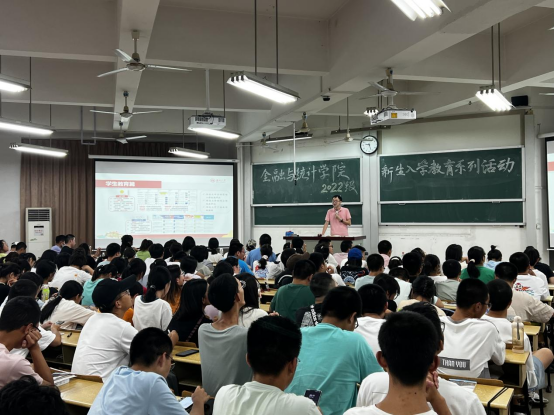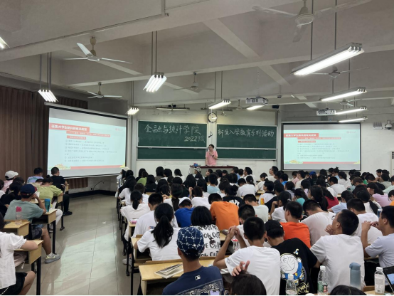 9月13日晚,A动漫 于财院校区第二教学楼举办2022级新生入学教育系列活动之“学生培养与日常事务主题讲座”,辅导员周斌主讲。