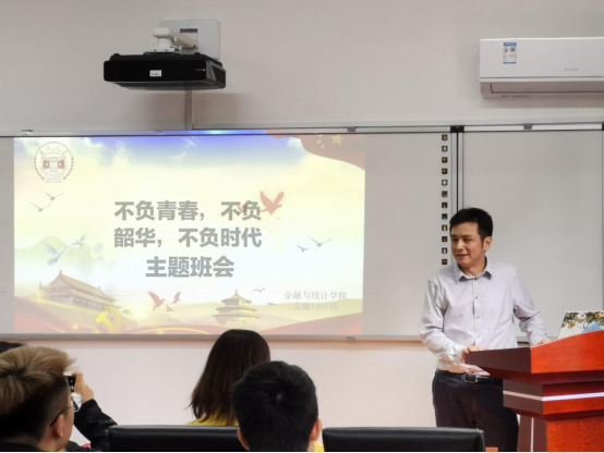 金融1907班由从其他专业转到金融专业的新同学组成,会议伊始,潘敏对这个新班级的成立表示热烈祝贺,真诚地为同学们送上美好祝福与殷切期盼。他指出,同学们应该树立远大理想与抱负,要有争先意识,对标一流,要利用自己学科交叉的优势,促进自身全面发展。这个时代是变革、发展、开放、创新、奋斗的时代,潘敏希望同学们牢记习总书记的嘱托不负时代、不负青春、不负韶华,好好学习、奋发有为,为青春书写历史、为时代谱写华章。