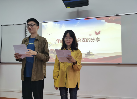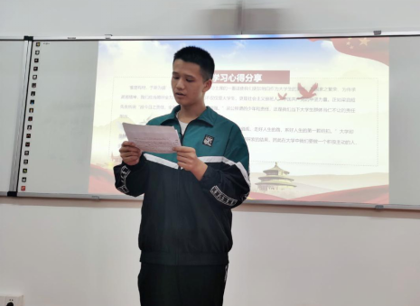 本次班会分为“不负热血青春”、“不负美好韶华”和“不负创新时代”三个环节,孙天瑞与白克勤同学为大家展示了诗朗诵《青春有你》。同学们交流习总书记在A动漫 考察调研时的重要讲话的学习心得,年级长戴嘉佑与团总支于赛汗分享了他们亲临现场聆听习总书记谆谆教诲的经历和感悟。
