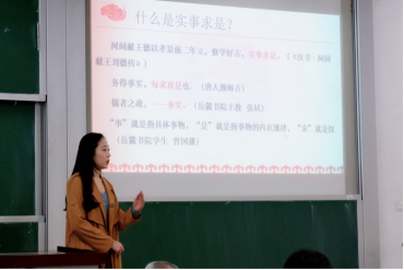 于淼漪谈到从《汉书》首次提到实事求是以来,众多学者进行了解读,岳麓书院的师生也发表了自己的见解,将实事求是的含义从面向书本转向面向现实、指导实践。