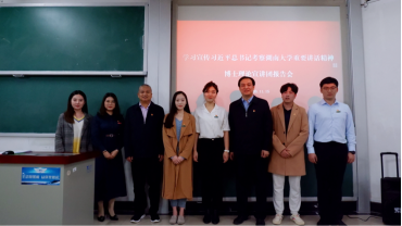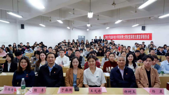 11月15日晚,校博士理论宣讲团主题宣讲报告会在财院校区二教301室举行。宣讲团成员、岳麓书院博士研究生王戈非、硕士研究生于淼漪作《“经世致用”的“一脉相承”》主题宣讲。学院党委副书记颜李老师、组织员谢树玉老师出席报告会,辅导员代表、学生代表参会。