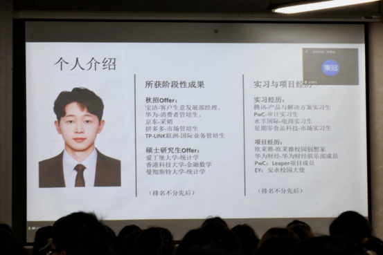 本次大会涵盖了四项关键议题,包括学情分析、日常管理、生涯规划、经验分享。首先,王雪雯老师通过学情分析,指出当前重点问题,着重讲解保研分数线,帮助学生设立明确学习目标。其次,王雪雯老师详细讲解了学校奖助学金体系、学院心理健康支持资源以及日常请假制度等日常管理方面的多项制度和规范,为同学们所需的支持和服务提供保证。最后,在生涯规划和经验分享环节所展示的思维导图囊括了出国、考研、保研、考公就业等多条路径,在此基础上,王雪雯老师邀请陈婉蓉学姐、黄润安学长和陈秉冠学长进行经验分享。