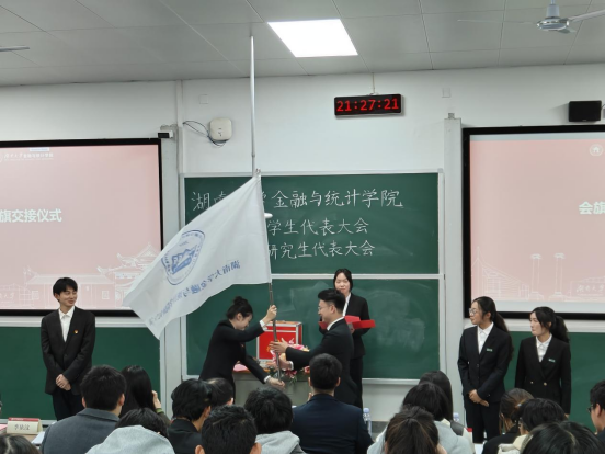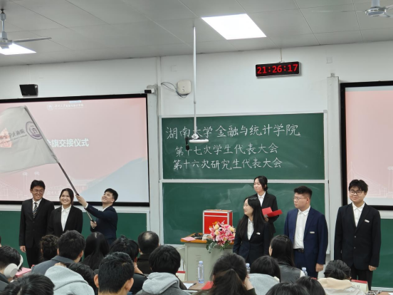 谭凤娥代表学院党委向大会的召开表示热烈祝贺,高度肯定学院学生骨干过去一年在思想引领、学风建设等诸多方面取得的扎实成效,对全体金统学子寄予殷切希望:一是立足中国人民抗日战争暨世界反法西斯战争胜利80周年,传承弘扬湖大师生教育报国的精神底色与责任担当;二是紧扣党的二十届四中全会擘画的“十五五”规划发展蓝图,以青春之我、奋斗之我投身强国建设、民族复兴伟业,彰显青年锐气、贡献青春力量。她寄语全体大会代表,要始终秉持公平公正原则,认真审议各项提案与工作报告,审慎选举产生新一届学生会和研究生会主席团,为学院学生工作注入源源不断的青春活力。