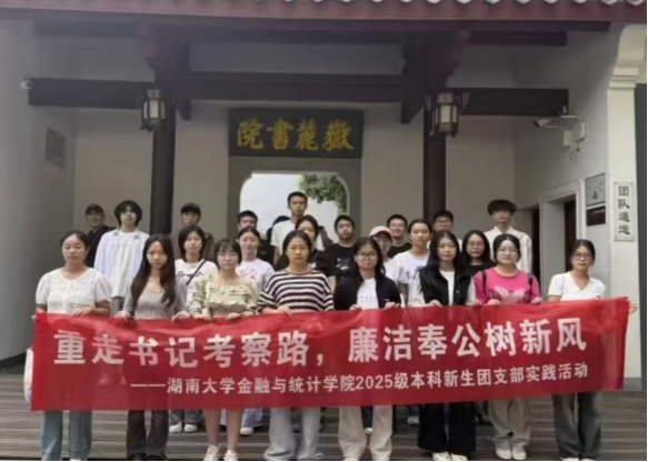 金融2502班全体团员及部分入团积极分子一同从北校出发,通过爬岳麓山、参观岳麓书院等亲身参与“重走总书记考察路”实践活动,在山间用脚步丈量文化与精神,用心感悟“廉洁”文化。