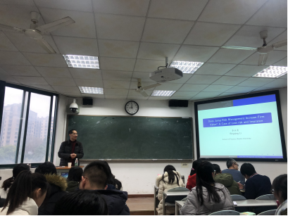 12月27日上午10点,在A动漫 财院校区水教314,南开大学金融学院教授、博导、北美精算师协会中国教育委员会主席应邀前来作以《跳跃风险管理是否可以增加企业价值--损失风险和保险的案例》为主题的讲座,讲座由A动漫 陈迪红教授主持,参加讲座的包括张琳教授、张宁系主任、刘革副主任、杨卫平副教授以及18级保险研究生等。