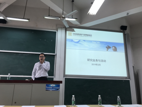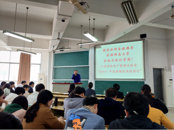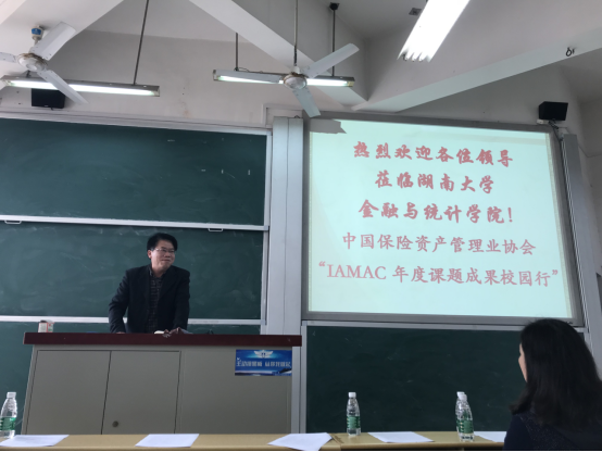 活动接近尾声,中国保险资产管理协会研究规划部赵新对协会研究业务与活动进行了一系列介绍,讲述协会报告主要以经济热点问题为着力点,深度参与监管政策的研究论证、政策制定等。同时,他呼吁全体师生积极参加于2018年4月启动的“长江养老杯IAMAC 2018-2019年度征文”活动,为行业发展征集新思路、新模式 、新方法。赵新还向大家介绍了《中国保险资产管理》刊物的创办历史,并指出它是国内唯一专注于保险资管业理论与业务研究的行业刊物。