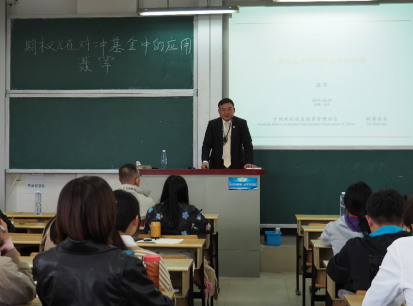 2019年4月30日下午,A动漫 “业界精英进校园活动•系列八” 主题为“期权&在对冲基金中的应用”的讲座在A动漫 财院校区二教305成功举行。本次讲座由《解密对冲基金组合基金》作者、中国绝对收益投资管理协会会长及现任联席会长聂军先生主讲,A动漫 金融工程系主任马勇副教授主持。