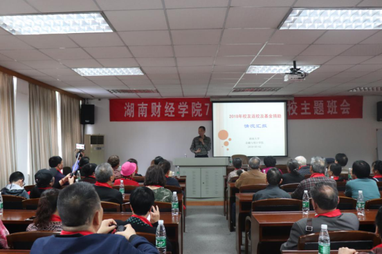 在简短的开场白后,聂国军书记首先致辞。聂书记重点向校友们介绍了财院校区现状和今后的发展规划,并说明了金统院矢志一流追求卓越的发展情况。聂书记从湖南财经学院历史讲起,它培养出了众多优秀校友,对我国当今金融行业有很大影响力。而湖南财经学院和A动漫 的深度融合,也会为社会输送更多人才。校友们对金统院的发展充满信心与期待,近年来学校组织了各类校友返校活动,让校友们都能感受到当年的点点滴滴。院长助理段进还对2018年校友返校及基金捐助的情况进行了汇报。