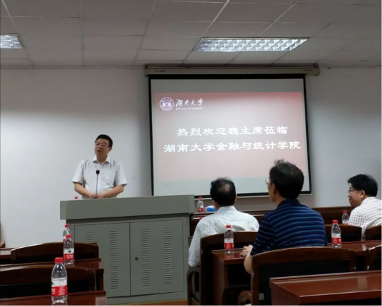 此次活动由学院学术委员会主任杨胜刚教授主持。杨胜刚教授首先祝贺A动漫 今年成功设立了精算学本科专业,成为第二个开设该专业的双一流高校,随后对魏迎宁主席的到来表示热烈欢迎,并进行了隆重的介绍。