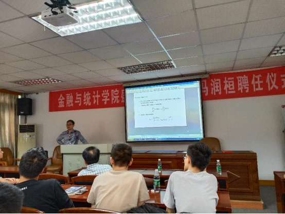演讲之前,保险系主任张宁对冯教授的学术背景和当前的研究情况做了介绍,并阐释了特聘教授的职责和工作任务,希望老师和同学们加强和冯教授的合作与交流。冯教授表示中国科技在过去的几年时间里得到了快速发展,在老龄化和相对宽松的金融监管背景下,中国保险市场出现了很多创新。对此,冯教授表示希望有机会将中国的保险精算与中国本土的创新结合,并提出将工程学、临床医学等设计理念引入保险精算领域,从而实现真正意义上的理论基础为国家产业提供服务。
