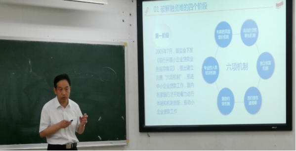 2019年6月13日周四下午3:00, “业界精英进校园系里活动”之《中小微企业融资难(贵)的症结与化解之道》在二教304成功举行,主讲人为A动漫 优秀校友,中国农业银行湖南省分行公司业务部粟青副总经理。