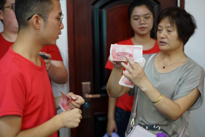 宣讲会主体由校歌合唱、PPT宣讲两个部分组成,其中又穿插着有奖问答等互动环节,以充分调动大家的积极性。宣讲会上最精彩的环节可谓是由“+乡计划”湖大调研团队员自编自导的相声,用贴近生活的例子、精心设计的情节、接地气的口吻,生动形象地向各位乡亲展现了一场真实而欢愉的“电信诈骗案”,更是赢得了在场所有人的热烈掌声。在辨认假币的环节,积极热情的乡亲主动上台,准确地复述出了辨别真假币的要点,我们也为其送上了精心准备的礼品。