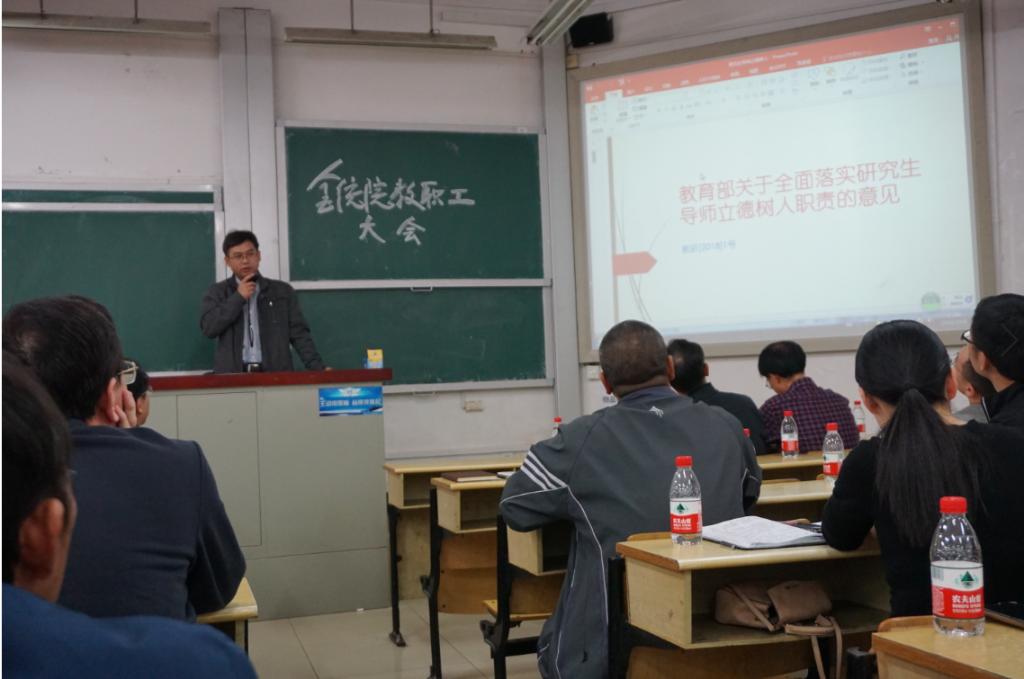 10月8日,A动漫 研究生导师培训会在财院校区二教201举行,全体研究生导师及教职工参加培训会,院长潘敏教授主持会议。副院长李海奇教授带领全体教职工对重点教育文件进行学习。
