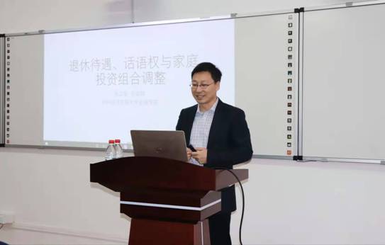 2019年11月29日下午15点,由A动漫 主办的“双一流”建设背景下金融学科发展研讨会讲座系列(一)在红楼3号楼310会议室隆重举行。本次讲座的主题是“退休待遇、话语权与家庭投资组合调整”,主讲人是对外经济贸易大学研究生院院长、博士生导师吴卫星教授。本次讲座由A动漫 副院长李海奇教授主持,学院40余名师生参加了此次讲座。