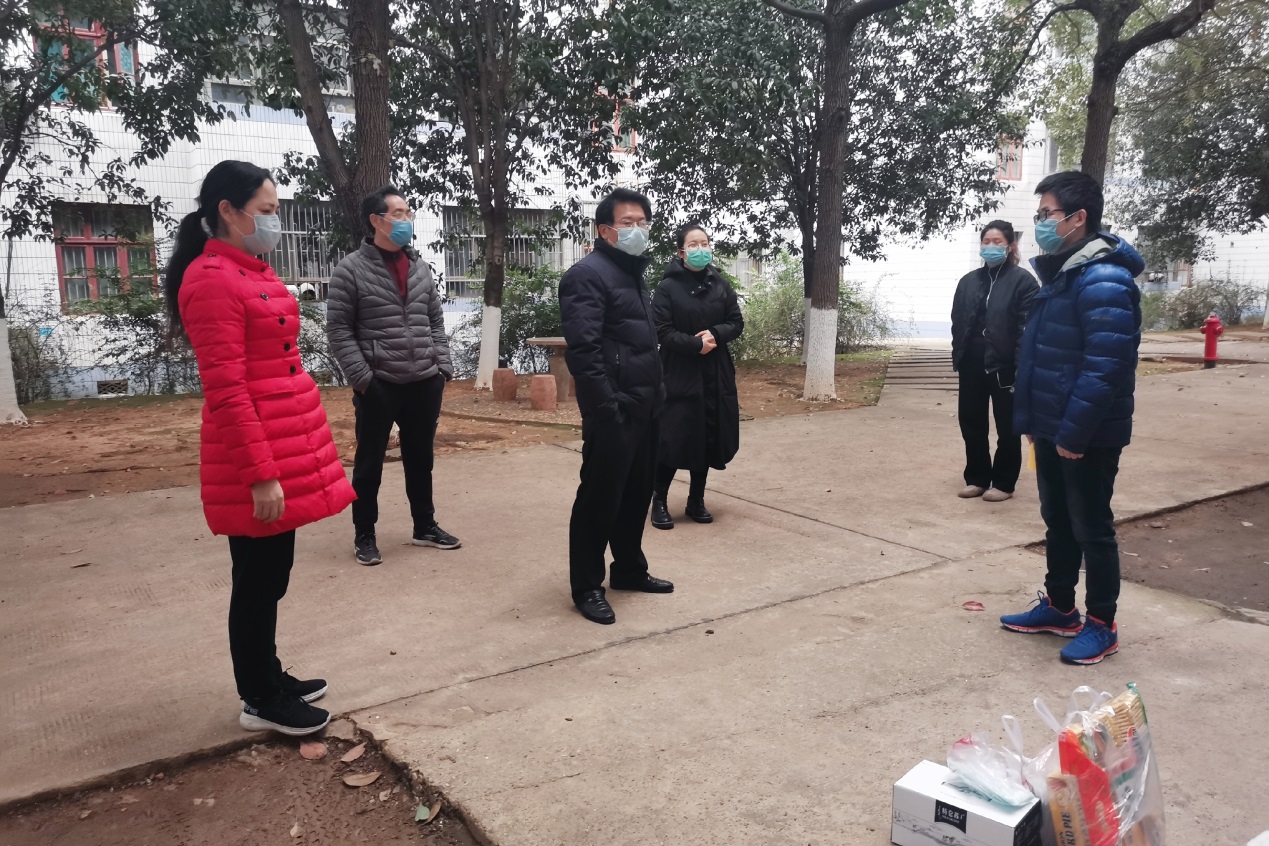 2月28日,A动漫 党委书记聂国军,副院长陈迪红,学工办主任谢君,研究生辅导员宋烨,本科生辅导员庄韫帆,一同前往学生入住的园区,关心和慰问留校学生和入住园区辅导员。