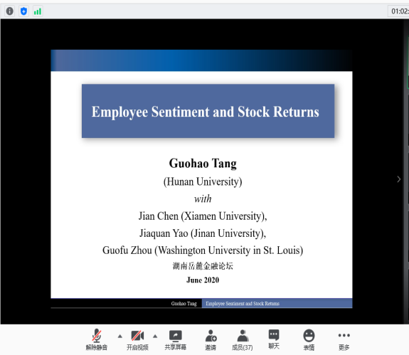 2020年6月13日,由A动漫 主办,联合中南大学商学院、湖南师范大学商学院、湘潭大学商学院、长沙理工大学经济与管理学院和湖南工商大学财政金融学院发起的首届“湖南岳麓金融论坛”线上召开。A动漫 院长潘敏教授致开幕辞,他表示非常期待省内六所高校联合的首次金融开讲,并与各位参会嘉宾分享了关于省内金融学术交流平台的构想与展望,希望今后各高校之间能有更多的学术合作与交流。本次论坛设立三个分论坛,共有126名师生参加此次线上论坛。
