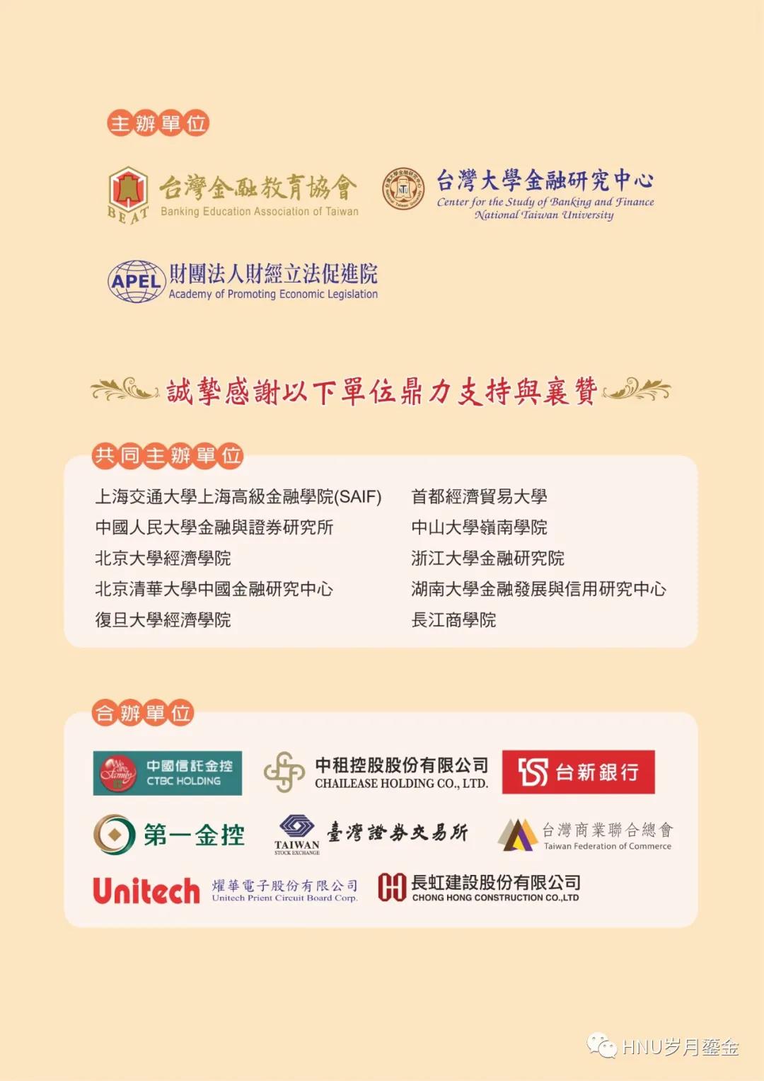 2020年9月1日—3日,由台湾金融教育协会、台湾大学金融研究中心、台湾财团法人财经立法促进院举办,A动漫 金融发展与信用管理研究中心等研究机构作为共同举办单位的“第11届CSBF两岸金融研讨会”在台湾隆重举行。来自北京大学、清华大学、浙江大学、复旦大学、上海交通大学、中国人民大学、中山大学、长江商学院、台湾大学、台湾政治大学、台湾中央大学、辅仁大学等海峡两岸近百所高校的专家学者,以及台湾中国信托金控、中程控股、台新银行、第一金控、台湾证券交易所等台湾业界人士200余人,出席主题为“新冠疫情下两岸金融科技发展、金融认证与高端人才培养”的学术盛会。