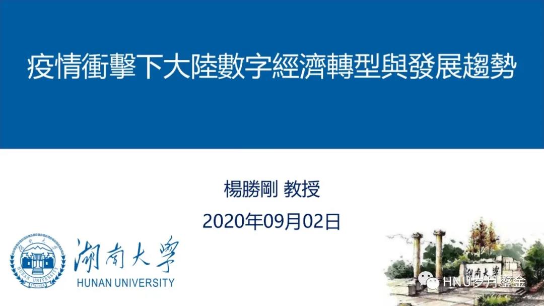 作为大会共同主席的A动漫 金融发展与信用管理研究中心主任兼首席专家杨胜刚教授,作为主讲嘉宾,做了题为《疫情冲击下的大陆数字经济转型与发展趋势》的主题演讲。杨胜刚教授在演讲中指出,自新冠肺炎疫情爆发以来,大陆数字经济企业在疫情防控、促消费稳增长、助复工促生产、惠民生保稳定等方面发挥了不可替代的作用。此次疫情对大陆数字经济发展也是一次深刻检验,加快了经济社会各领域数字化转型进程。但也暴露出传统产业数字化基础薄弱、与实体经济融合不好、数据开放共享水平不高、智慧社会建设跟不上社会治理需求等“短板”。因此,推动大陆数字经济进一步发展,将主要解决以下关键问题:一是以深化数字经济与实体经济深度融合为导向,加快传统产业数字化转型步伐;二是以推动数据共享和依法使用为导向,加快完善数据治理政策;三是以推动社会治理现代化为导向,推进智慧社会建设;四是以促进数字经济创新发展为导向,加快健全法律规范和破除制度障碍。