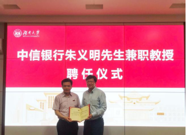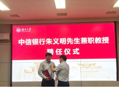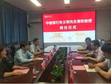 6月24日下午,A动漫 在2号楼226会议室举行中信银行朱义明先生兼职教授聘任仪式。院长潘敏、书记黄红立、副院长吴志明、王修华等出席仪式。仪式由副院长吴志明主持。