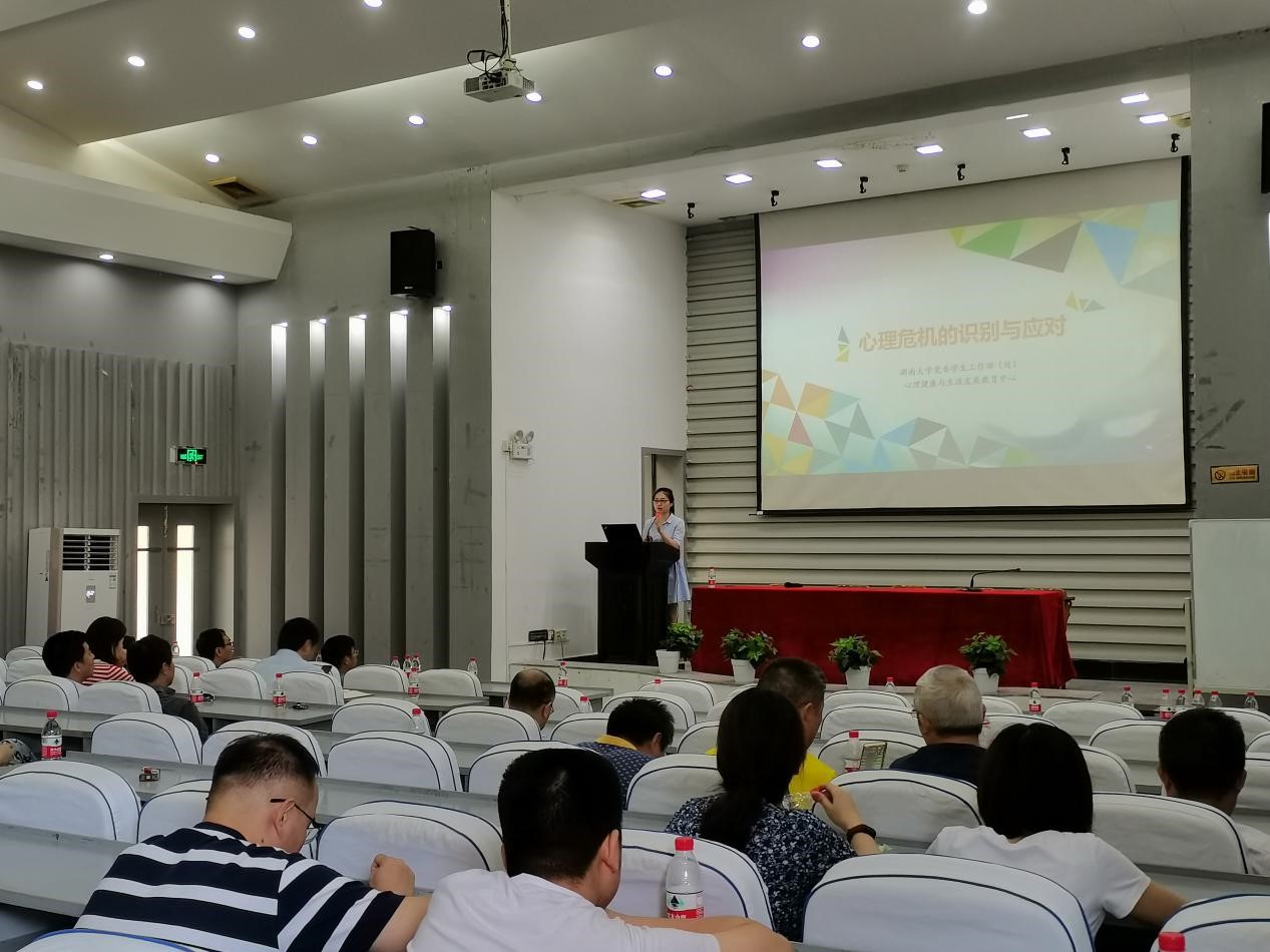 会议还邀请了学校心理健康与生涯发展教育中心吴思遥老师作题为《心理危机的识别与应对》的培训讲座。吴思遥从学院心理危机基本状况、危机识别对象特点、心理危机应对流程三个方面重点讲述了研究生导师识别和应对心理危机的方法。她提醒研究生导师重视研究生心理健康教育,要密切关注学生思想动态,注重研究生的人文关怀。