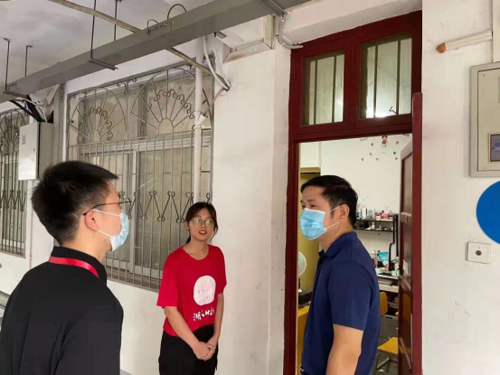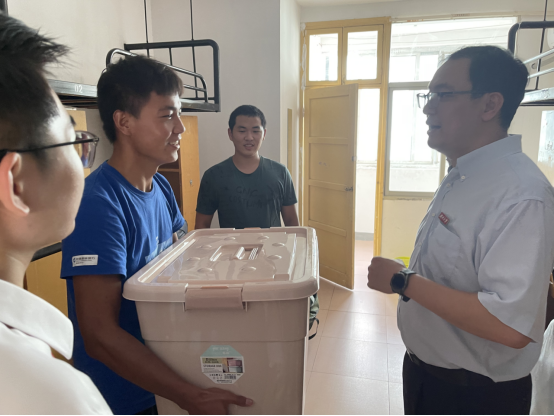 在新生宿舍里,院领导对新生们提出殷切希望,叮嘱同学们尽快转变角色,适应环境,以积极的面貌适应新的学习生活。同学们也十分热情的与院领导交谈,并且十分感谢学院的关怀。