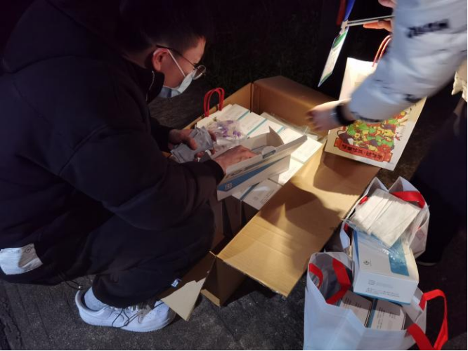 刘斌组织“抗疫卫士突击队”分发抗原自测试剂盒