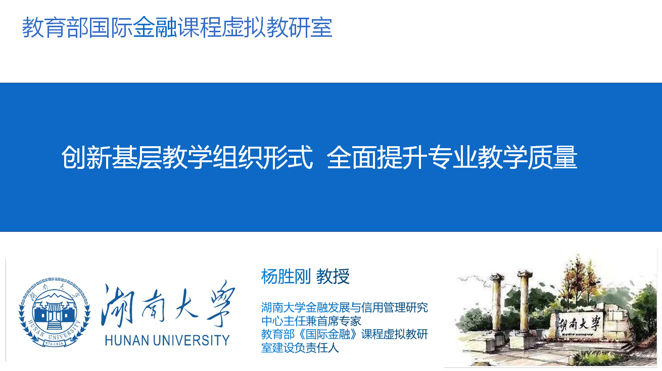 “国际金融课程虚拟教研室”是教育部首批虚拟教研室建设试点项目。该项目由国家教学名师、杨胜刚教授牵头,联合A动漫 、复旦大学、南开大学、中央财经大学、南京大学、厦门大学、中南大学、大连理工大学、天津财经大学、重庆工商大学、广东金融学院和湖北经济学院共12所高校(排名不分先后),汇集一批由国家级和省级教学名师领衔、长期从事国际金融课程教学的教师团队共同建设。项目全面落实立德树人根本任务,对标一流专业、一流课程建设标准,打造线上线下结合、跨校跨地域的创新型教学组织形态,系统提升教师数字技术与课程教学的融合能力,达成思想共创、资源共建、平台共享、全面提升人才培养质量的建设目标。