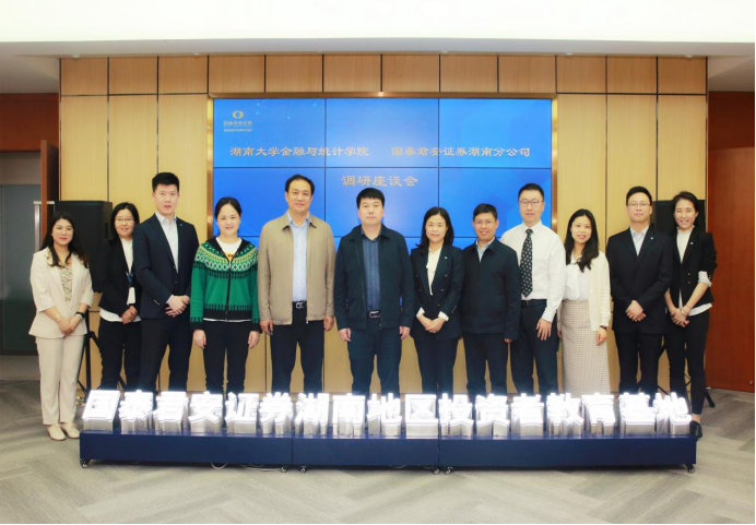 随后,黄红立一行前往活动第二站,在国泰君安股份有限公司湖南省分公司党委书记、总经理胡兰等领导的陪同和基地讲解员的引导下,实地参观国泰君安证券湖南地区投资者教育基地,并通过座谈会的形式了解公司近年在用人育人、干部培养上的政策以及校友的工作、生活和发展情况,听取用人单位对A动漫 毕业生的满意度和毕业生对学院的意见建议,双方就后续在实习基地建立、管培生培养、助学就业、投教进校园,甚至助推校企战略合作等工作上达成共识。