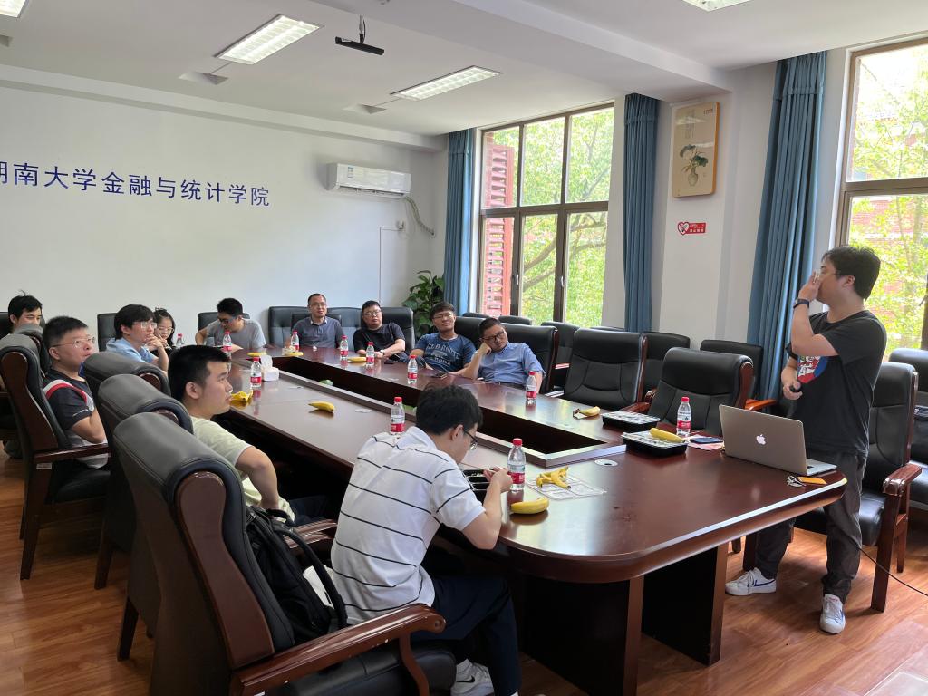 2022年6月23日学院“第八期午餐研讨会”在红楼2号楼226学术报告厅举行。此次研讨会由金融工程系助理教授邓滔崧老师做论文分享,共有二十余名师生参加本次午餐研讨会。