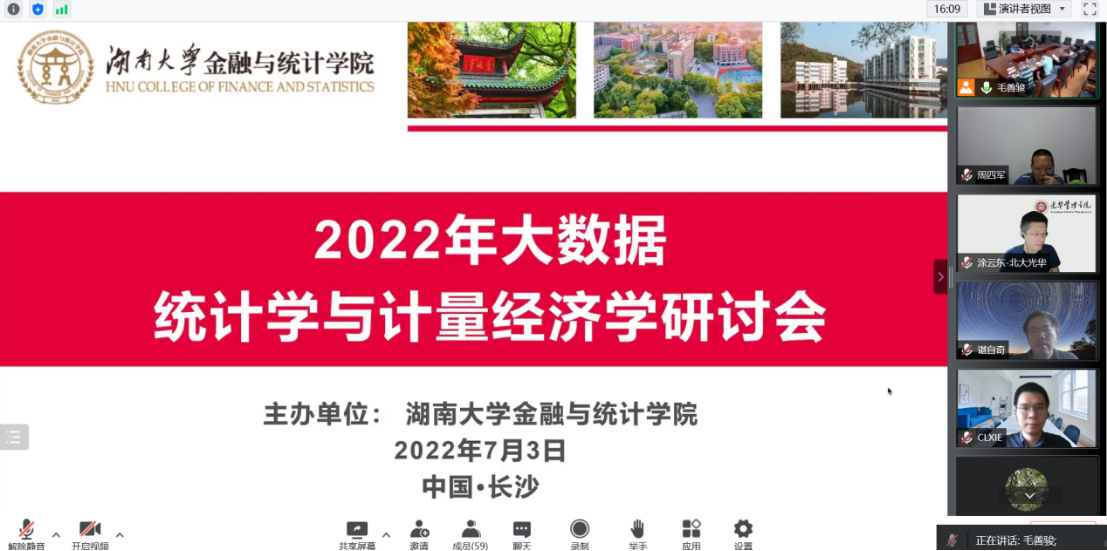 2022年7月3日,A动漫 举办了2022年大数据统计学与计量经济学研讨会。会议开幕式由A动漫 副院长李海奇教授主持。李海奇副院长在致辞中代表A动漫 对莅会嘉宾表示热烈欢迎,向各位参会嘉宾介绍了学校、学院和学科的历史和发展情况以及本次会议的议程情况。