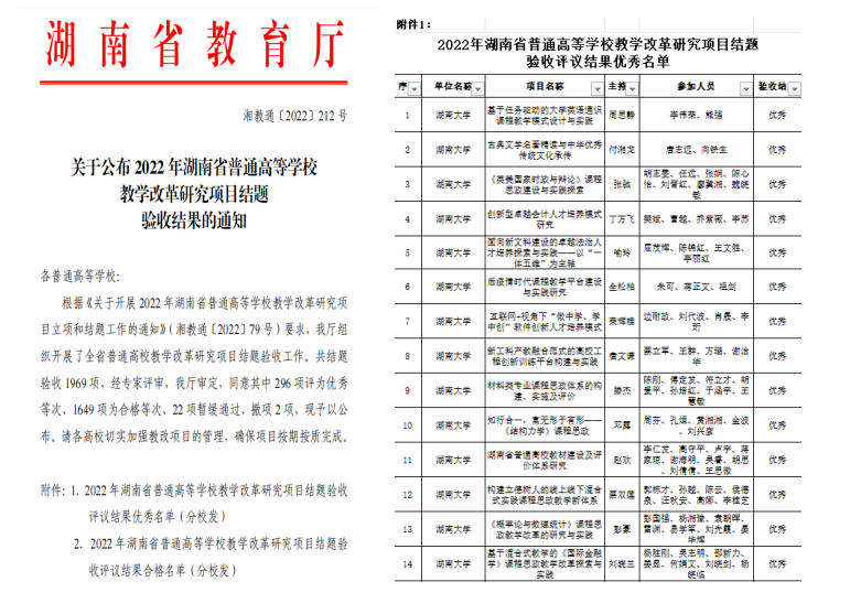 图1 湖南省教育厅下发文件及项目结题优秀名单截图