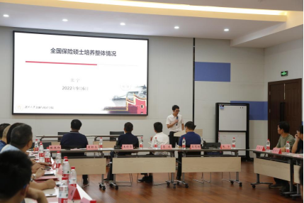 在保险人才培养座谈会环节中,A动漫 张宁副院长作为全国保险专业学位研究生教育指导委员会委员向与会人员介绍国内保险专硕培养整体情况。他从保险专硕培养单位的开办学校数、开办时间、招生规模与专任教师队伍等方面进行介绍,他指出,此次聘任的7位校外导师均是保险业资深专家,有着丰富的实务经验,通过此次校外导师的聘任,学院做实了保险专硕双导师培养制度,为高质量应用型保险人才的培养奠定了坚实的基础。