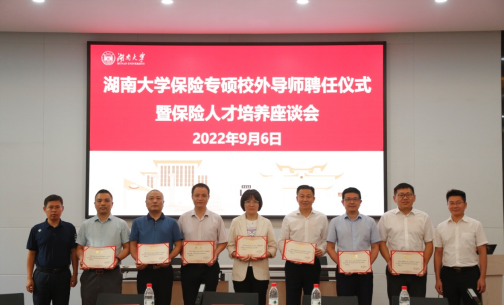 9月6日下午,A动漫 保险专硕校外导师聘任仪式暨保险人才培养座谈会在学院报告厅隆重举行。财信吉祥人寿总公司总裁助理、人力总监曹义,财信吉祥人寿总公司总精算师廖鹤鸣,财信吉祥人寿总公司产品精算部与个险部总经理屠炎波,平安人寿湖南分公司总经理彭若杰,大家人寿湖南分公司总经理何琼,平安产险湖南分公司副总经理李晓,平安产险湖南分公司人力资源部经理杨军以及学校研究生院培养办副主任李建、院长王修华、院党委书记黄红立、副院长吴志明、张宁、研究生办主任罗俊杰、保险精算系全体导师、2022级保险专硕学生代表参加。会议由学院副院长吴志明主持。