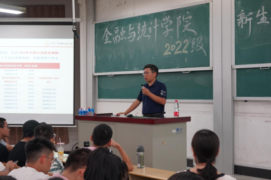王修华以学院办学历史和学科沿革为切入点,展开讲解了专业设置、机构设置、师资力量、课程情况、科研成果、人才培养等方面内容,全面地给新同学上了进入A动漫 的第一堂必修课。湖大金统学院学科办学历史悠久,金融学科是中国人民银行首批重点建设学科、国家“211工程”重点建设学科。金融学科与统计学科是国家“985工程”哲学社会科学创新基地的主要支撑学科、学校“双一流”建设的主要支撑学科。享有“千年学府、金融黄埔”的美誉,是国内高校金融与统计专业人才培养的重要基地之一。
