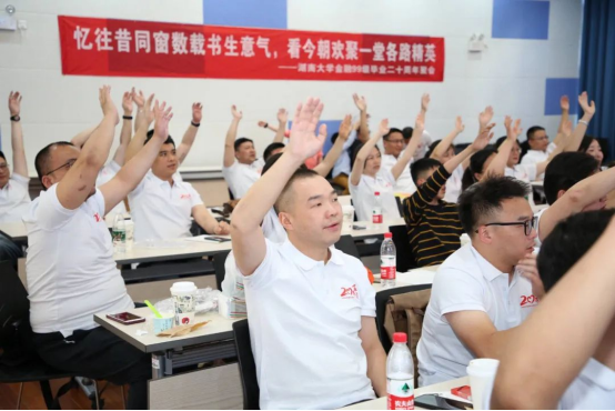 院党委书记黄红立用“欢迎”“祝贺”“祝愿”三个关键词表达了对这次校友返校活动的感受。“欢迎”是代表学院和母校对99级金融校友返校聚会表示欢迎,欢迎大家多回母校走走看看,希望同学之间、师生之间通过聚会交流感情、共话发展,并欢迎大家对母校的发展建言献策;“祝贺”是代表学院对各位校友20年来取得的成绩表示祝贺,祝贺大家在事业和家庭等方面取得的不俗成绩,感谢大家通过自己的努力为A动漫 、为金统学院争光添彩;“祝愿”是代表学院对各位校友将来的发展表示祝福和美好期盼,希望各位校友牢记岳麓书院讲堂的对联“是非审之于己,毁誉听之于人,得失安之于数,陟岳麓峰头,朗月清风,太极悠然可会;君亲恩何以酬,民物命何以立,圣贤道何以传,登赫曦台上,衡云湘水,斯文定有攸归。”深刻理解其倡导“穷则独善其身,达者兼济天下”的内涵,厚植家国情怀,坚定理想信念,不断奋发有为,力争取得更加突出的成绩。