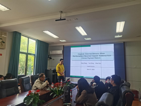 研讨会上,主讲人郭淼老师做了主题为《Hospitals’Distorted Behavior When Reimbursement Becomes Capped: Evidence from China’s Payment Reform》的学术报告。文章对中国的医疗支付改革,即总额控费(GB)进行了研究,旨在了解该改革在防止医疗支出报销过度增加的同时是否导致整体医疗支出上升。首先,研究使用理论动态规划模型提出了在不确定性条件下,"收入上限"政策可能失效的观点。然后,结合医院行业2015年至2016年患者层面数据,采用双重差分模型来考察政策效果。实证结果表明,尽管该政策在控制报销方面是有效的,但医院的扭曲行为导致了相反的效果,即医疗总支出增加。此外,从住院部到门诊部还存在溢出效应。这项研究的发现对于未来实践中的付费服务框架内的支付改革以及其他控制支出的政策具有重要意义。