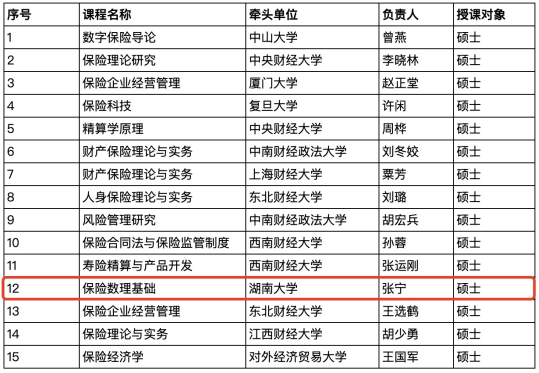 近日,全国保险专业学位研究生教育指导委员会公布了2023年全国保险专业学位研究生在线示范课程计划建设团队评选结果。经过评审,来自全国11个培养单位的15个课程教学团队入选,其中,A动漫 张宁教授负责的《保险数理基础》课程教学团队入选。