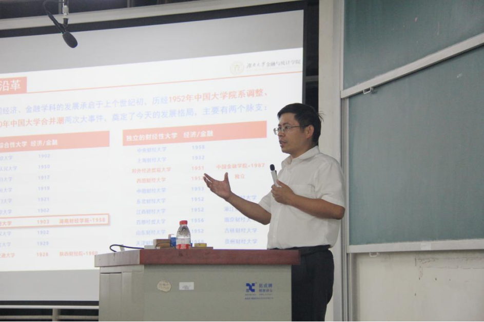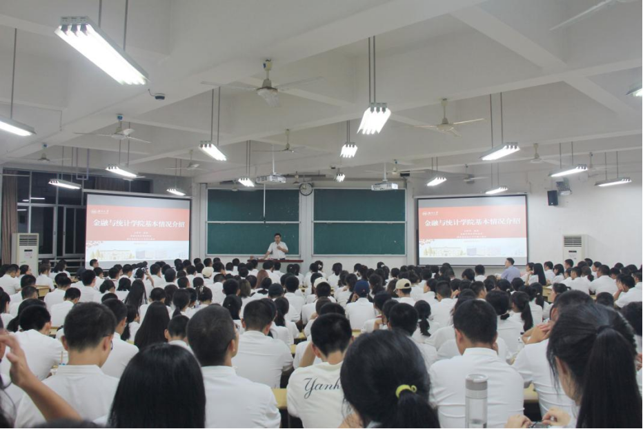 王修华院长首先对全体新同学加入金统大家庭表示热烈的欢迎,他从学科沿革、机构设置、师资队伍、科学研究、人才培养、学生工作等几个方面对学院进行了全面而又系统的介绍,加强了同学们对学院的初步了解。接下来,王院长结合《平凡的世界》《习近平的七年知青岁月》《觉醒年代》《潜伏》等优秀书籍与电视作品,畅谈如何度过一个充实而又有意义的大学生涯,并寄语同学们要做新时代“四有”大学生:一是有理想,做“眼中有光”的新时代大学生。大学时期是理想成熟的重要时期,远大的理想是大学生成长成才的前进动力和精神支柱,人生可以有很多的理想,但人生最重要的理想要同祖国和人民联系在一起。他勉励同学们树立正确的的世界观、人生观、价值观,要把个人“小我”的理想融入到中华民族伟大复兴的“大我”梦想之中,与时代同向、与祖国同行。二是敢担当,做“肩上有责”的新时代大学生。担当责任是中华传统优秀文化的精髓之一,是大学生的必修课。一代人有一代人的担当与使命,当代大学生要把握时代际遇,胸怀“国之大者”,努力学好专业知识,夯实根基,要积极参与创新创业活动、“三下乡”社会实践活动、国情调研活动,培养担当精神。三是肯奋斗,做“脚下有路”的新时代大学生。新时代是奋斗者的时代,奋斗是人生永恒的主题。我们既要仰望星空,也要脚踏实地。当代大学生在学习上要刻苦钻研,不畏艰难,孜孜以求,努力练就过硬本领。大学生现在普遍过着比较优越的生活,但肯吃苦、能吃苦的优良传统不能丢,只有“艰难困苦”才能“玉汝于成”。四是讲纪律,做“心中有尺”的新时代大学生。讲纪律守规矩是大学生的基本准则,也是人格成熟的重要标志。无论是在课堂上、在寝室里,还是在考试中,在交往中,同学们要遵纪守规。他告诫同学们要有敬畏之心,不越底线、不碰高压线,争做讲纪律守规矩的表率。
