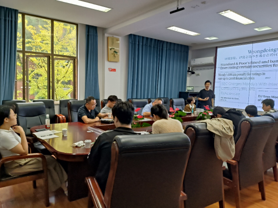 研讨会上,主讲人舒傲老师做了主题为“Regulatory punishment in an oligopolistic market: Evidence from credit rating agencies”的学术报告,以中国评级机构大公国际信用评级有限公司(以下简称“大公”)为证据深入研究了寡头垄断市场中监管惩罚的有效性。此研究通过收集信用评级、债券及发行人特征、债券日收益等数据,对政府支持的评级机构提供的2372家公司的20,705个实体评级样本进行分析,以大公的停业处罚作为外生冲击,检验处罚事件前后大公评级质量的变化。研究发现,惩罚对大公有短期的威慑作用,但惩罚后其评级质量恶化。此外在该惩罚事件冲击下,原本具有较高市场份额的评级机构变得更加保守,原本竞争力较弱的评级机构则会降低评级质量。以上研究表明在寡头垄断的信用评级市场,监管处罚不具有长期效果。