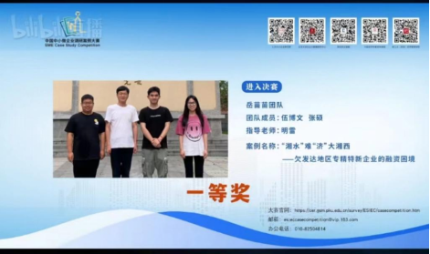 经过紧张、激烈的角逐,最终,A动漫 的岳苗苗、张硕、伍博文团队的案例作品《“湘水”难“济”大湘西——欠发达地区专精特新企业的融资困境》荣获一等奖。