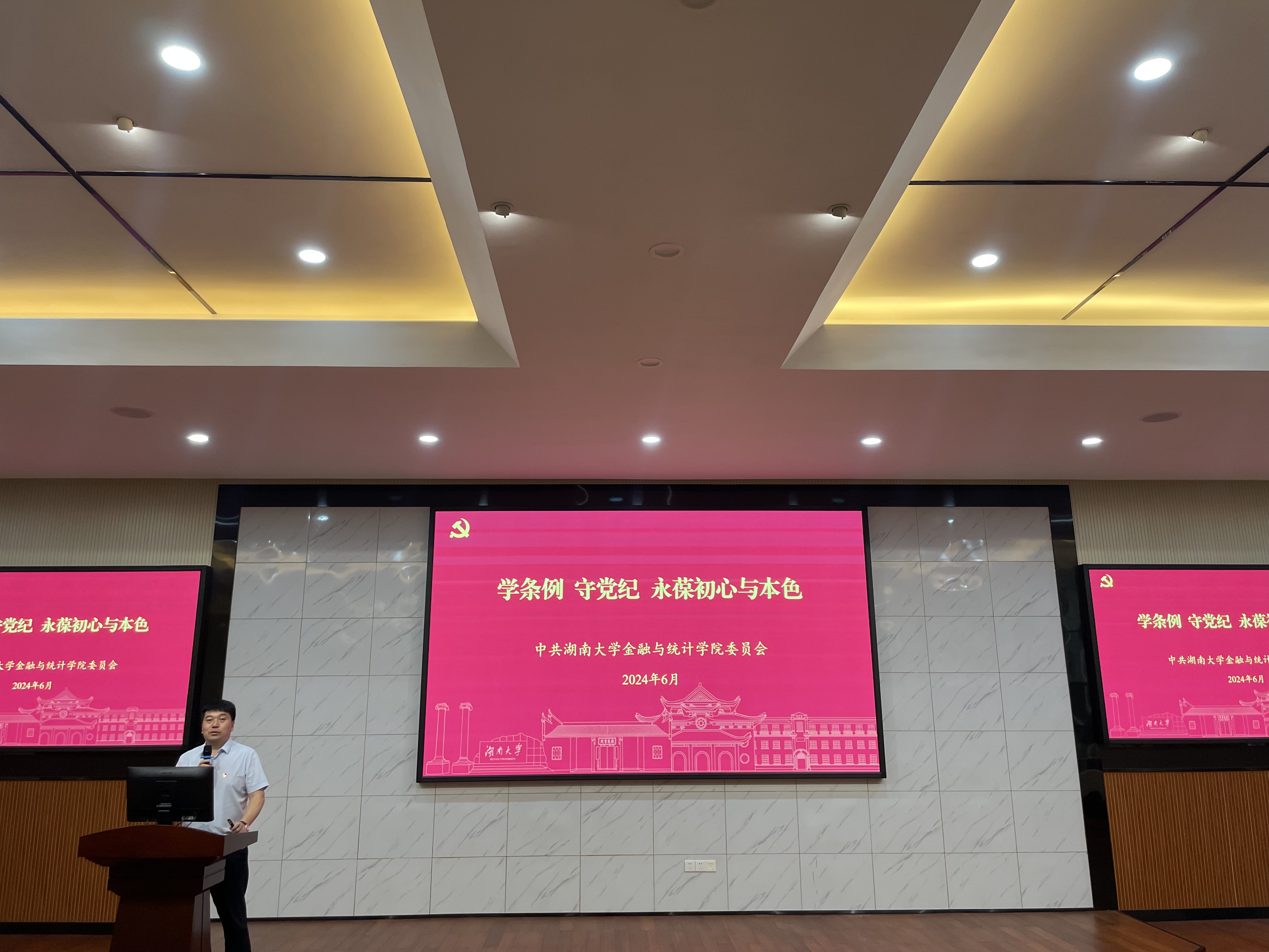 6月20日,A动漫 “学条例,守党纪,永葆初心与本色”2024届毕业生党员党课在财院校区老食堂二楼报告厅举行,本次党课由学院党委书记黄红立老师主讲,毕业班辅导员刘斌、全体毕业生党员参加。