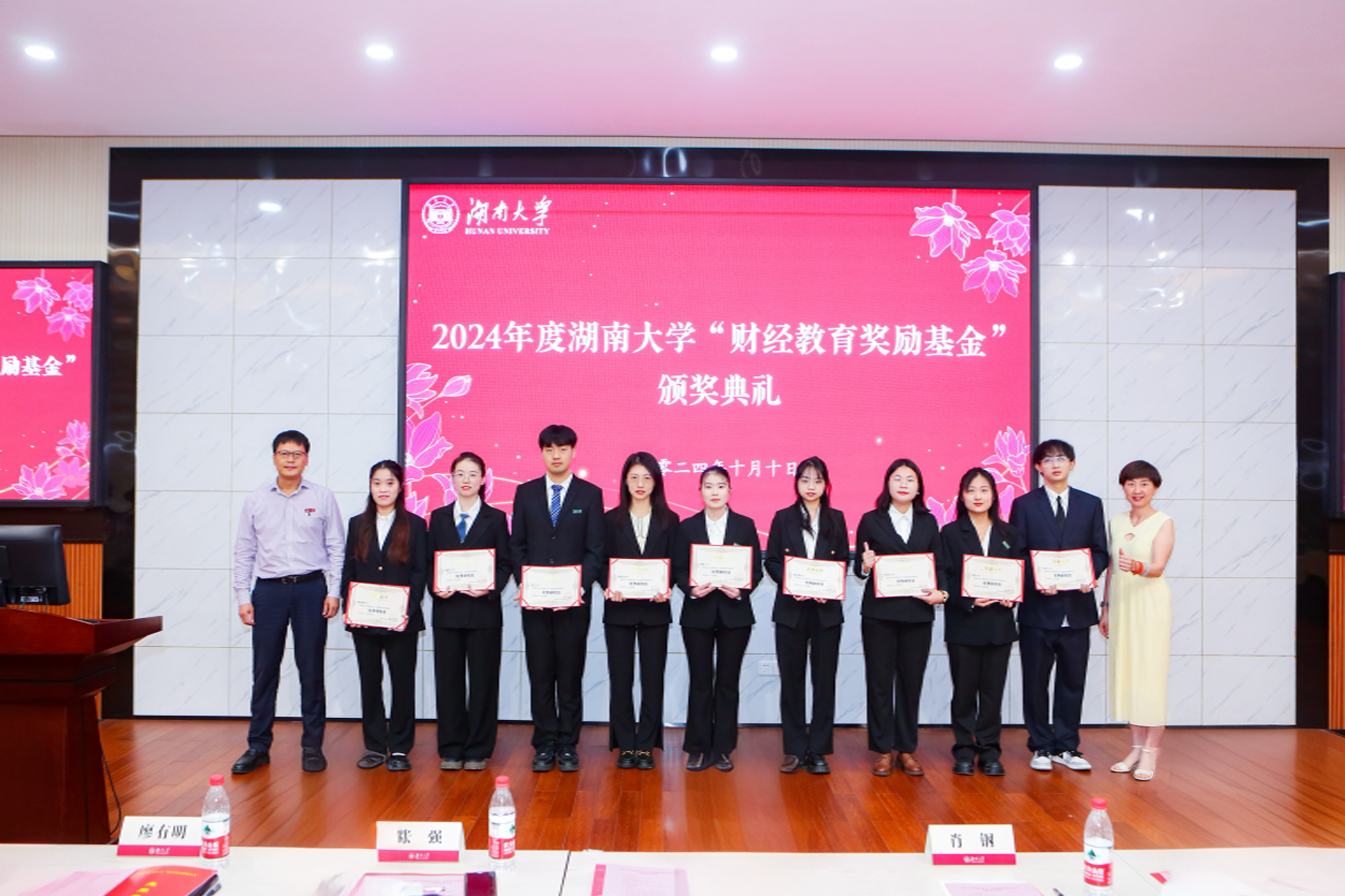 陈伟宣读2024年度A动漫 “财经教育奖励基金”获奖名单,向获奖师生致以热烈的祝贺。老教师孟祥兰荣获“恩师奖”;青年教师罗鹏飞、邓玉萍荣获“优秀青年教师奖”;17名学生获得“优秀本科生奖”,9名学生获得“优秀研究生奖”,10名学生获得“优秀学生干部奖”。
